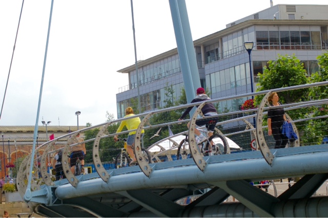 It links Bristol Temple Meads Station to new developments on the other side of the river. The station can be seen in the background here and oh! Could that count as another tent there?